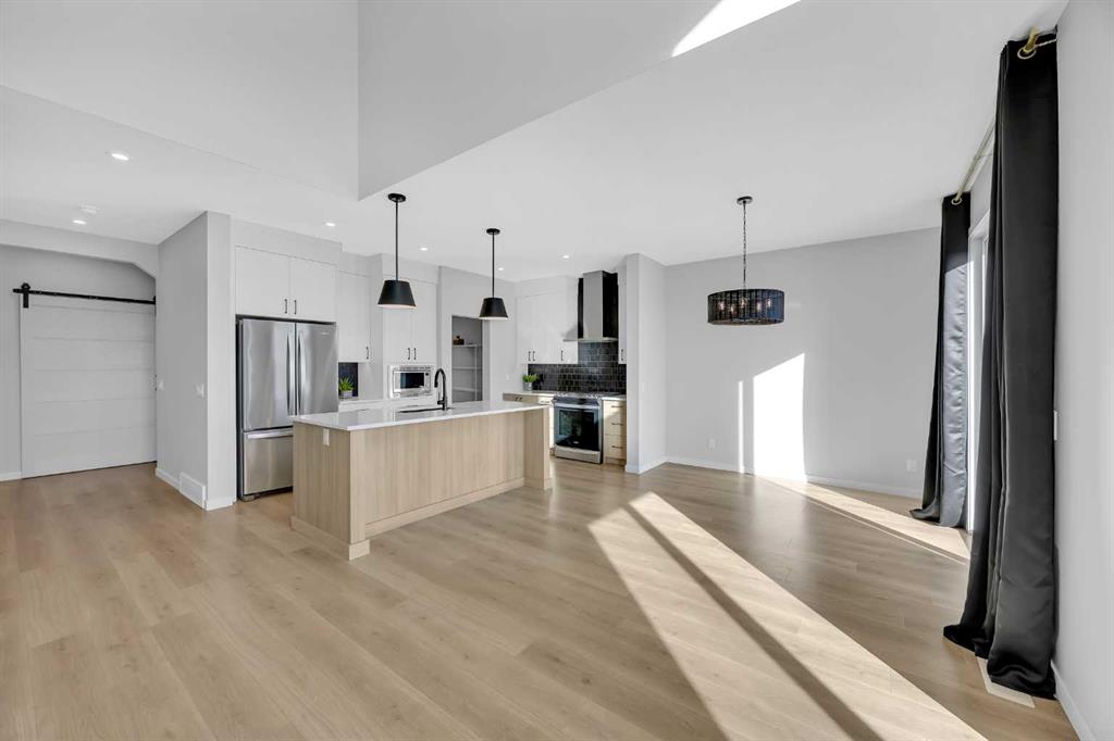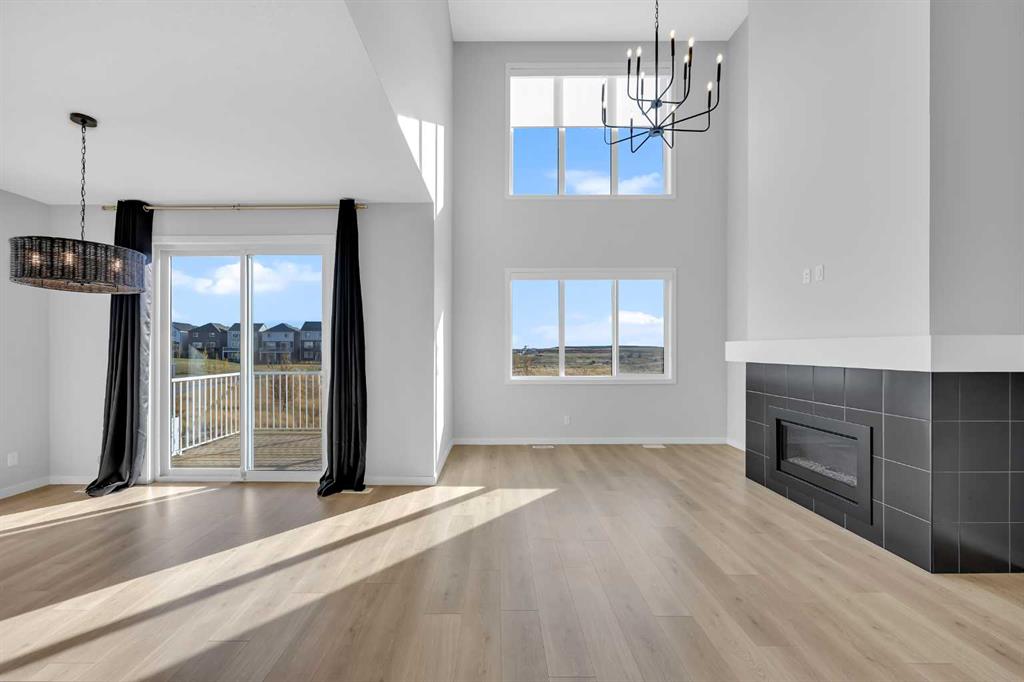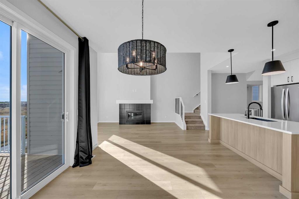 Rangeview community of southeast Calgary. This stunning walkout Dalia by Baywest Homes backs onto a serene pond with scenic pathways and features a large deck - perfect for relaxing or entertaining. Boasting 2,322 sq. ft., the main floor showcases a rare open-to-below layout with soaring ceilings, tall windows, and abundant natural light. The chef-inspired kitchen includes a walk-through pantry and flows seamlessly into the dining and living areas with a gas fireplace. High-end blinds throughout add both co...