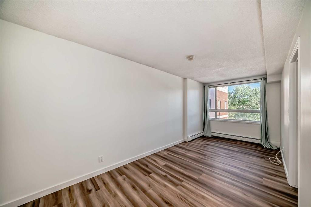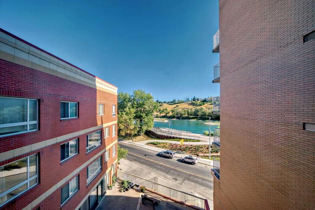 Welcome to this top floor Broadview Garden 1 bedroom apartment unit with underground parking ($38,000 if sold separately) located in the heart of Calgary's Chinatown. This top floor unit features newer vinyl plank flooring and paint throughout (both updated in 2024), offering an inviting Bow River view. It has a great open floorplan with spacious living room. One of the standout features is the stunning open view of the historic Lions on Centre Street bridge crossing the Bow River leading up to Crescent Hei...